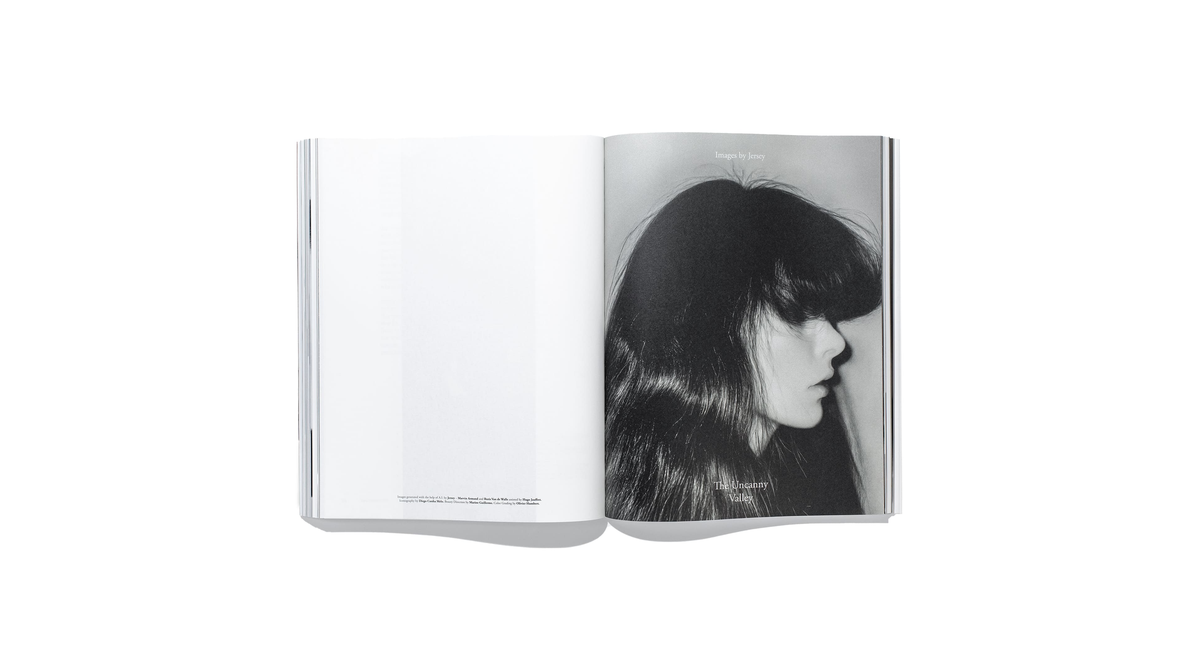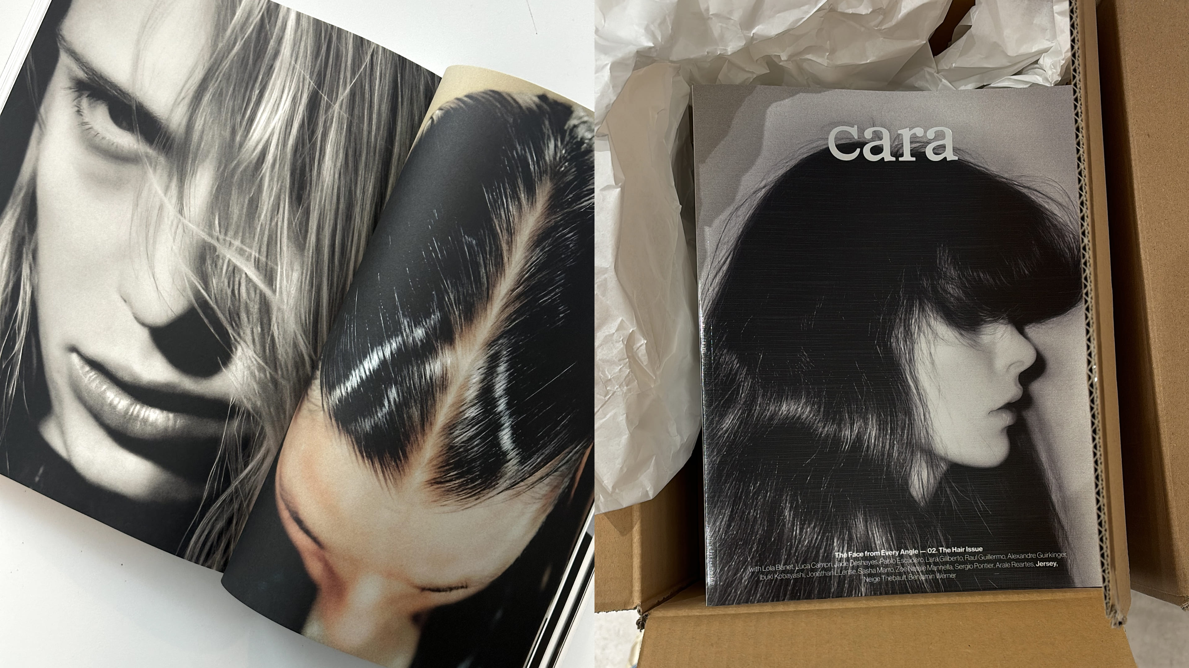 We created a 10 page editorial with AI, with hair becoming gradually longer through the pages while faces become less and less human. We were also invited to design the Cara website.