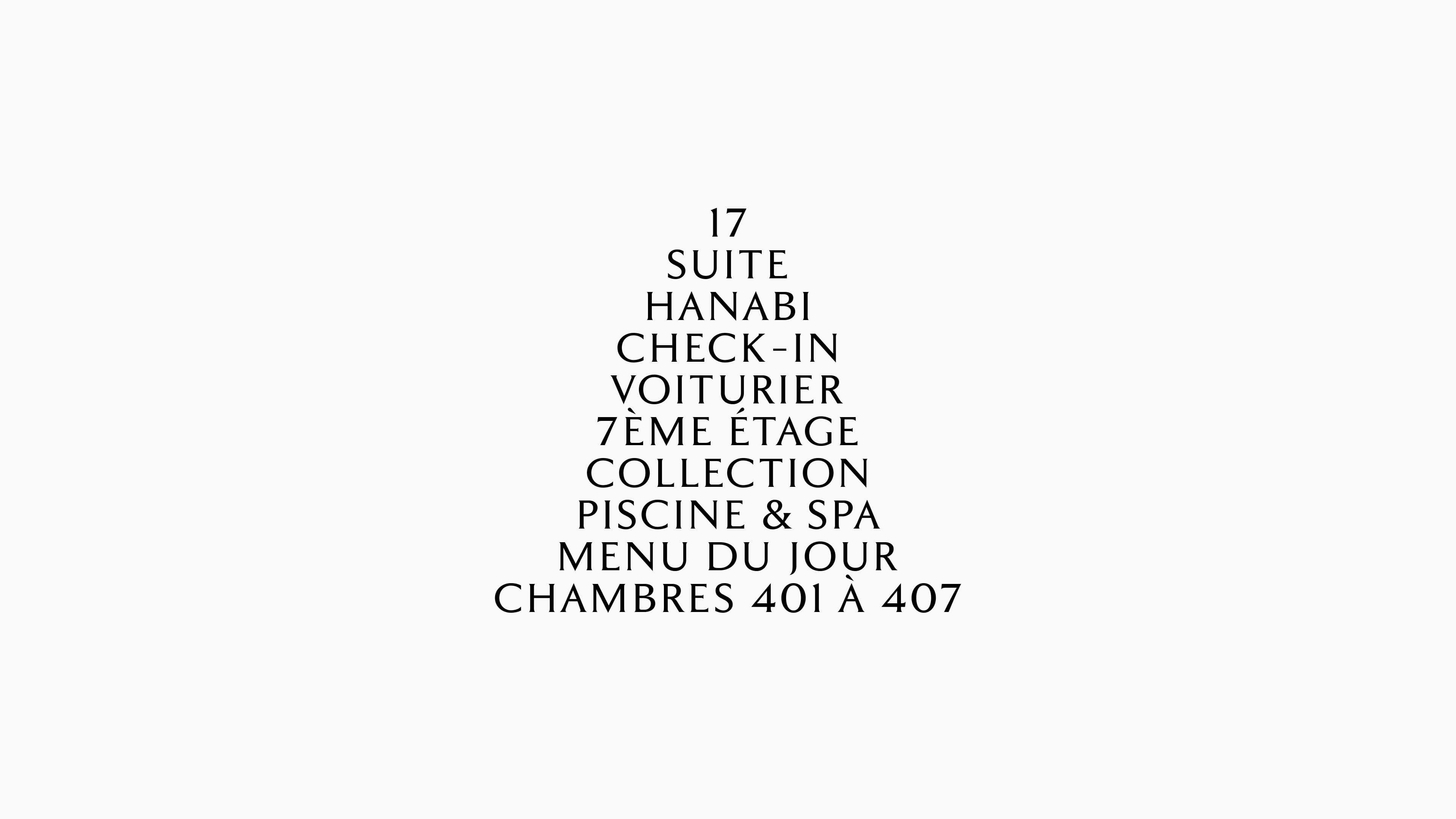 We had the pleasure to lead the hotel's global design direction, under Pragma's Olivier Leone's creative direction. We designed all graphic assets including a custom typeface, the stationery and print family, the website, uniforms and signage among others. Our design philosophy borrowed from Japanese composition mixed with rich texture and craft.