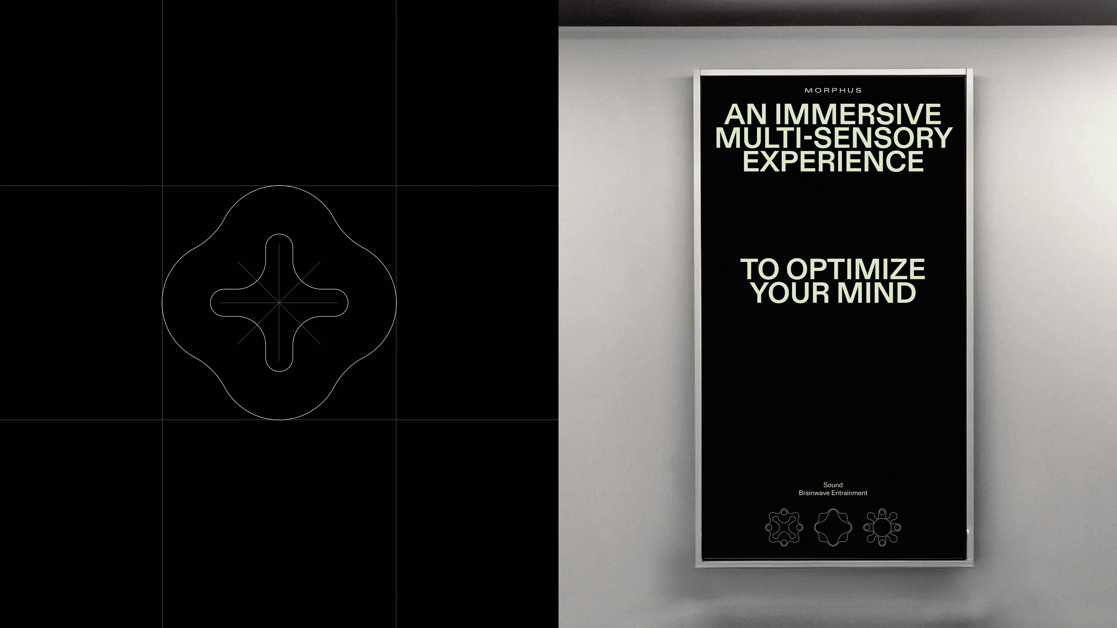 We created a complete brand identity including a logo and mark, a shape alphabet to visualise meditation benefits inside the app, digital templates and motion principles.